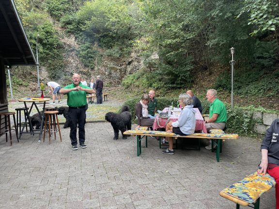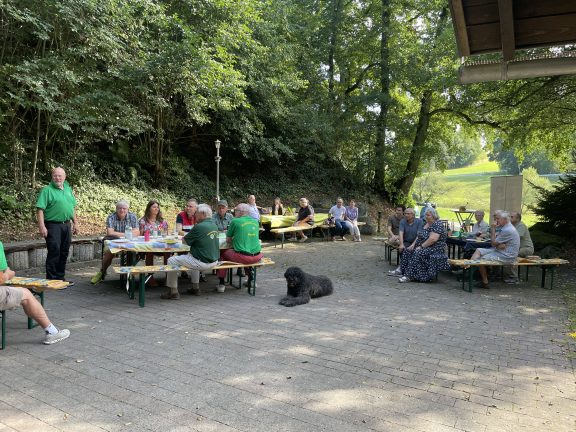Das Draußensitzen an den verschiedenen Tischgruppen war ein Traum: Die einen genossen die Sonne, die anderen suchten lieber den Schatten – von jung bis alt, von 27 bis 86 Jahren war alles vertreten. In jeder Tischgruppe wurde gescherzt und gelacht, und durch das Wechseln der Sitzplätze entstand eine lebendige, fröhliche Atmosphäre, die das Fest bis in die Abendstunden hinein trug. Erst gegen 22 Uhr, als schließlich alles in der Hütte verstaut war, klang dieser besondere Tag langsam aus.