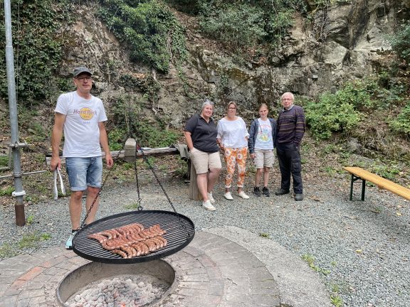 Am Sonntagmorgen um 9.30 Uhr traf sich dann noch einmal ein kleines Team – Dietmar, Siggi, Christiane und Thomas sowie Belinda und Chris. Gemeinsam wurde die Hütte aufgeräumt, sauber gemacht und alles ordentlich im Anhänger verstaut. Zum Abschluss saß man noch bei einer Tasse Kaffee und den verbliebenen Köstlichkeiten zusammen – ein rundum schöner Ausklang eines gelungenen Festes.